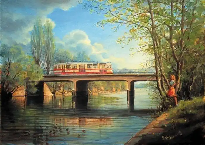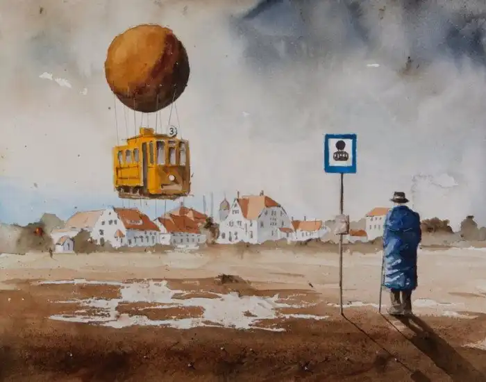 «Трамвайная остановка. Утро». Художник Тибор Наги (Словакия, род. 1963)