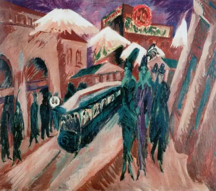 «Рельсы на Лейпцигштрассе» (1914, из серии «Сцены улиц Берлина»). Эрнст Людвиг Кирхнер (1880–1938)