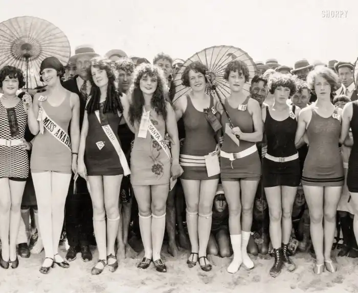 Участницы пляжного конкурса красоты; Хантингтон-Бич, Калифорния, 1925 год.