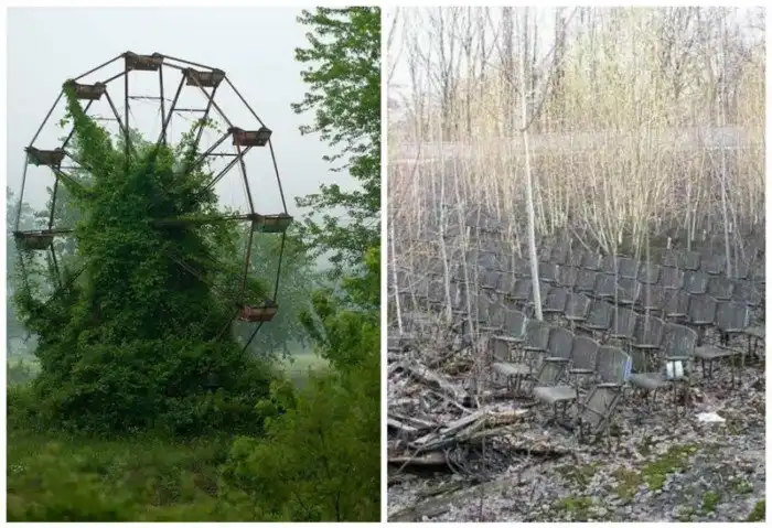 Следы человеческой деятельности видны уже практически по всей планете. Человек что-то строит, отвоевывая у природы куски земли. Но иногда обстоятельства вынуждают уйти с насиженных мест и тогда природа берет свое и начинает медленно возвращать себе свое. И это завораживающе красиво и страшно одновременно