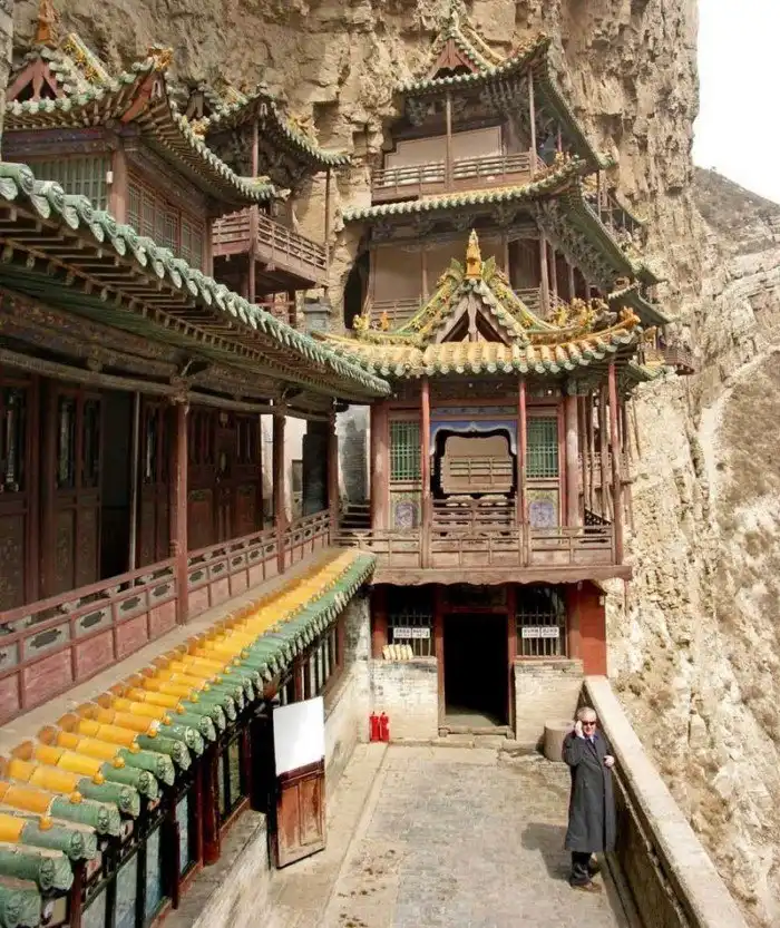 Когда-то люди строили храмовые комплексы, монастыри в скалах. Сейчас такие места привлекают лишь туристов, но раньше люди действительно там жили. "Висячий монастырь" находится в Китае, построен он был в 491 году. В монастыре вдоль отвесной стены расположено около 40 залов и павильонов. Здания держатся на деревянных сваях, упирающихся в скалу. Сама скала используется также как задняя стена помещений, выемки в скале сделаны для изображений и статуй Будды. Монахи все-таки отважные ребята.