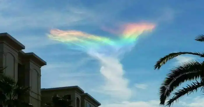 Удивительное по красоте природное явление можно наблюдать на тихоокеанском побережье США (штат Айдахо), когда солнце поднимается высоко в небо. Научное название этого феномена «округло-горизонтальная дуга», в народе называют «огненная радуга». Лучи Солнца при этом проходят через высоко расположенные перистые облака, состоящие из кристаллов льда в форме шестигранников. Солнечный свет преломляется в этих кристаллах особым образом, и в результате мы видим «огненную радугу». Это явление может простираться на несколько сотен квадратных километров.