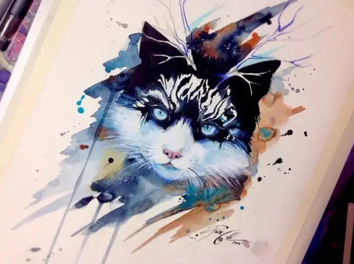 Немецкая художница Пикси Колд рисует акварелью удивительные портреты людей и животных, отличающиеся настоящим буйством красок. Девушка родилась в семье художников, поэтому еще в детстве раскрыла в себе талант к изобразительному искусству. А с 2012 года ее хобби стало профессией. В настоящее время Пикси не только пишет картины, но еще и создает сказочный макияж. Талантливый человек талантлив во всем!