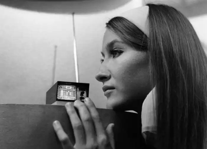 Брижит Бардо и Тильда Тамар демонстрируют чулки в витрине магазина в Париже.