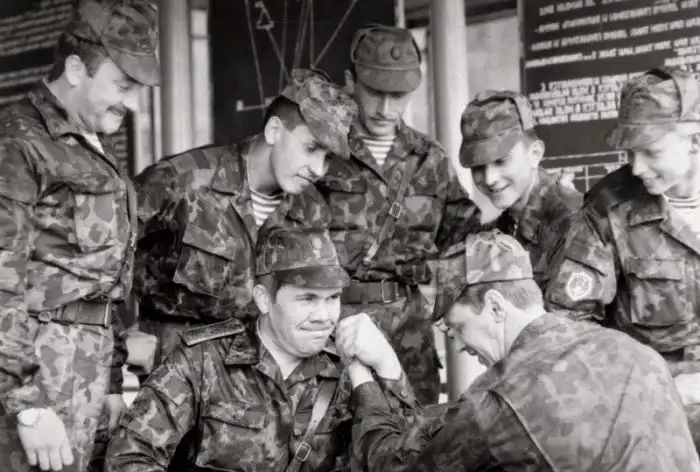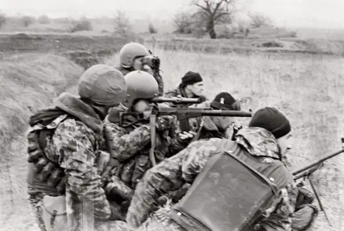 Командующий 14-й гвардейской общевойсковой армией РФ генерал-лейтенант А. В. Лебедь с подчиненными. Приднестровская Молдавская Республика. Молдавия.