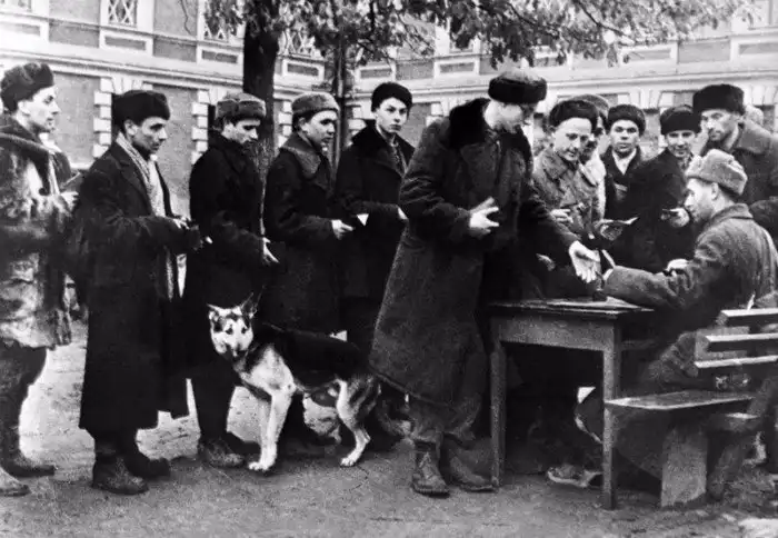 Жители Москвы записываются в ряды народного ополчения. РСФСР.