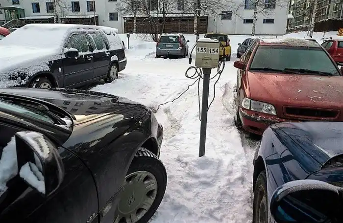 Но отличия сразу бросаются в глаза. Перед домом большая парковка на сотню машин. У каждого есть свое парковочное место, оборудованное розеткой для подогрева авто. Есть гостевые места с такими же розетками. Платишь за место только если есть тачка, это стоит 10 евро в месяц.