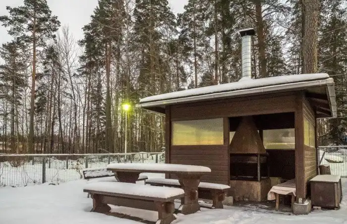 Рядом есть площадка для барбекю и даже мангал. Тоже общественный.