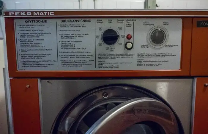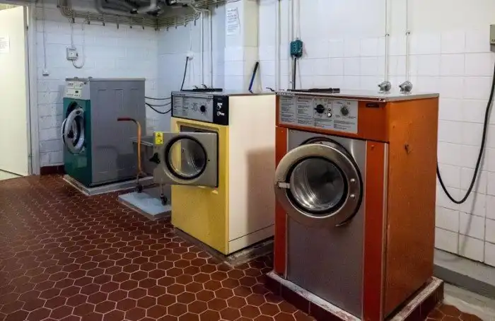 Прачечная комната в соседнем подвале. Две стиральные машины работают “по записи”, а одна в режиме “живой очереди”.