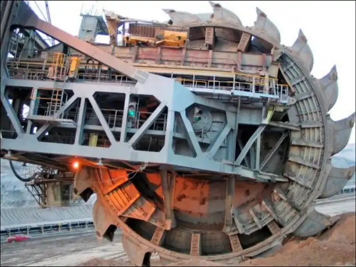 Ротор состоит из 18 ковшей по 6,6 кубометров каждый. Это колесо делает по 48 оборотов в минуту. За день он перелопачивает 240 тысяч кубометров породы, что примерно соответствует наполнению чаши футбольного стадиона на высоту 10-этажного дома.