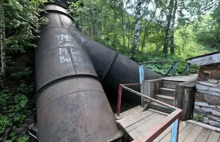 Трубы не менялись с момента постройки, это, наверно, самое уязвимое место станции. Постоянно появляются дыры и течи, иногда затыкают просто палкой.