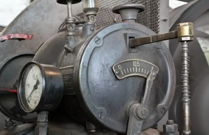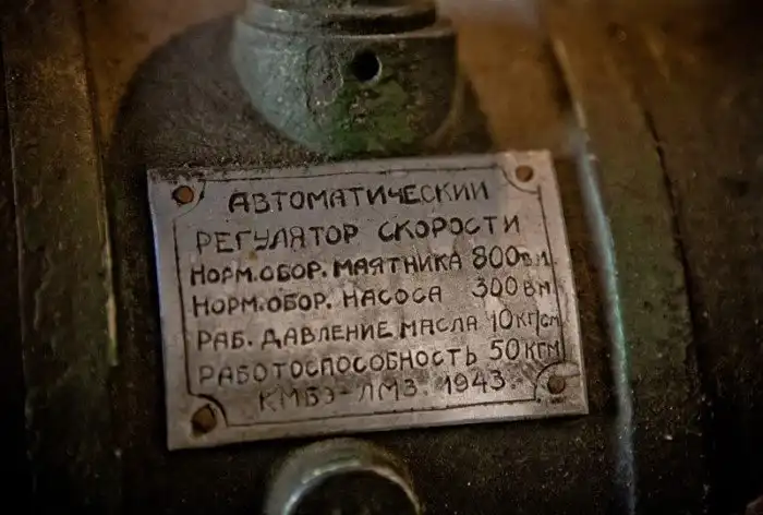 Когда-то забот у дежурного было меньше. Вот эта штуковина со штурвалом и манометром автоматически регулировала частоту вращения турбины, сейчас тоже все вручную.
