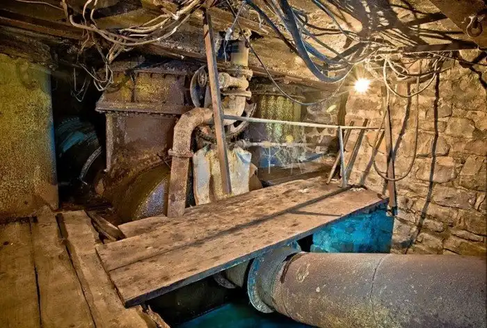 А в подвале старые снасти для рыбной ловли, запчасти, детали механизмов и вода.
