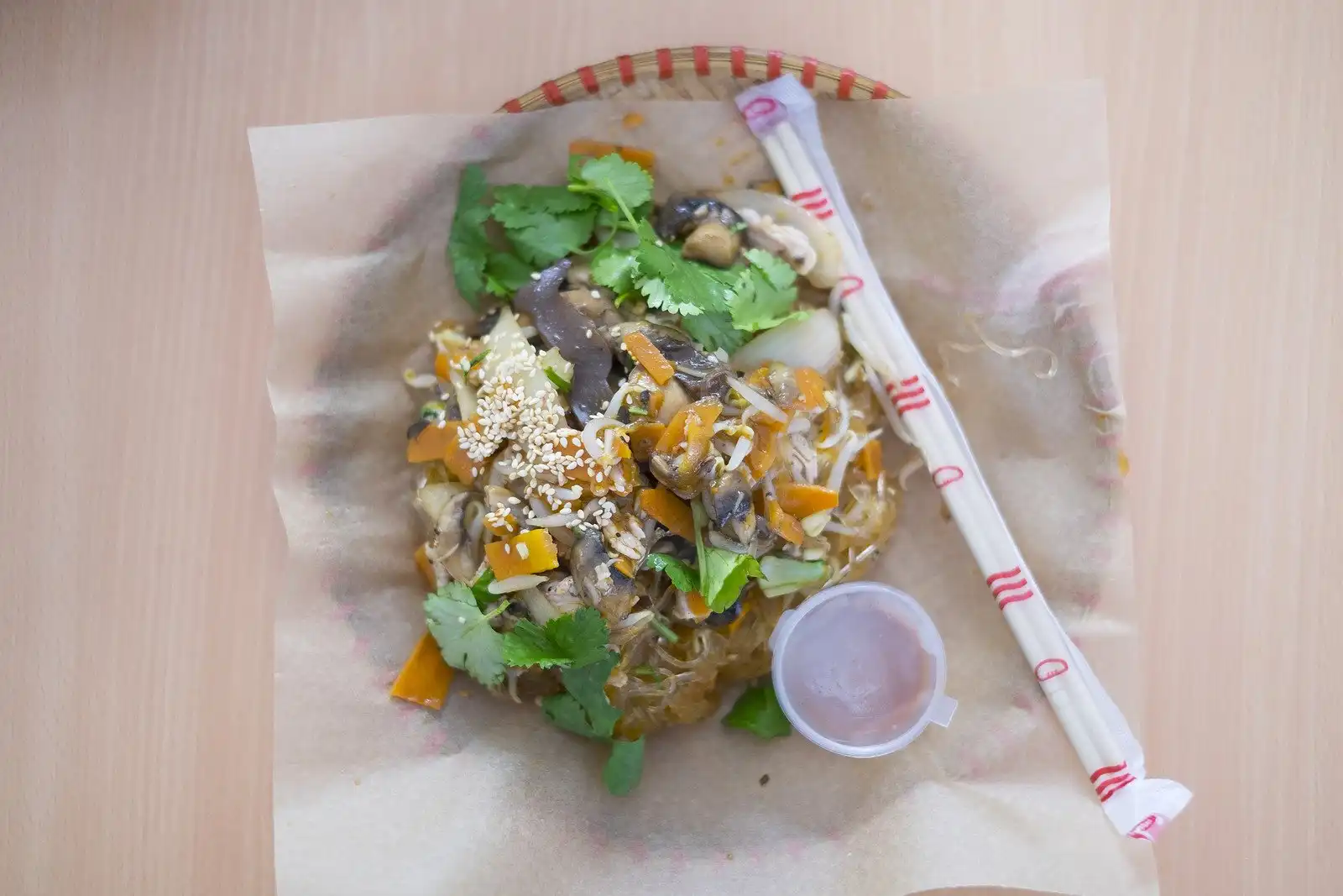 Меню очень простое: суп Фо -350 рублей, нэмы по 100 рублей, спринг-роллы (с креветками, курицей, манго, папайей и морковью в соусе хат-муй) по 150 рублей, а лапша Миен Као Га за 350 рублей.