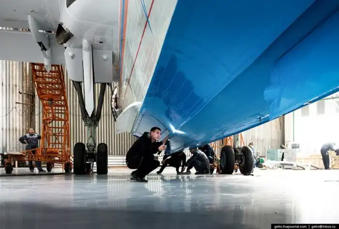 Бе-200 работает на водной поверхности при высоте волны до 1,2 метра. На фото: сборка не самой типичной для самолёта детали конструкции — поплавка.