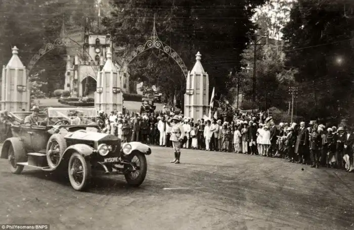 Губернатор Мадраса виконт Гошен выезжает на "роллс-ройсе" из резиденции и приветствует публику, собравшуюся, чтобы хотя бы издали взглянуть на нового правителя.