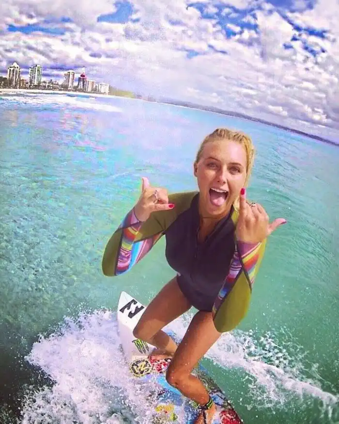 22-летняя австралийка Элли-Джин Коффи — профессиональный серфер. Пару лет назад она входила в топ-20 мирового рейтинга. Но не будем утомлять вас подробностями ее карьеры и перейдем сразу к главному. Ведь и в инстаграме Элли-Джин нет ничего лишнего: только море, пляжи, купальники… Добавим лишь, что у девушки есть три родные сестры и они тоже частенько появляются на фото.