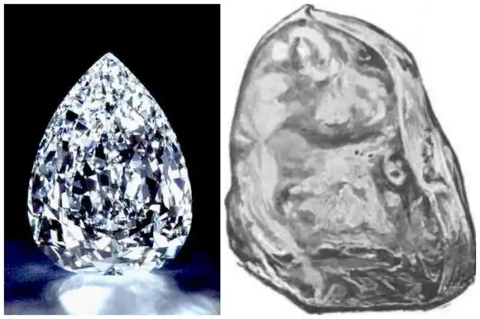 Как известно крупнейший мировой алмаз - «Куллинан» (Cullinan), или «Звезда Африки» был добыт в 1905 году в ЮАР, его вес превышает 3000 карат. Из достоверных источников известно, что в совокупности этот алмазный гигант был расщеплен на 105 частей, которые составляют чуть менее 35% от всего объема алмаза. Из него получились 4 наиболее известных бриллианта.