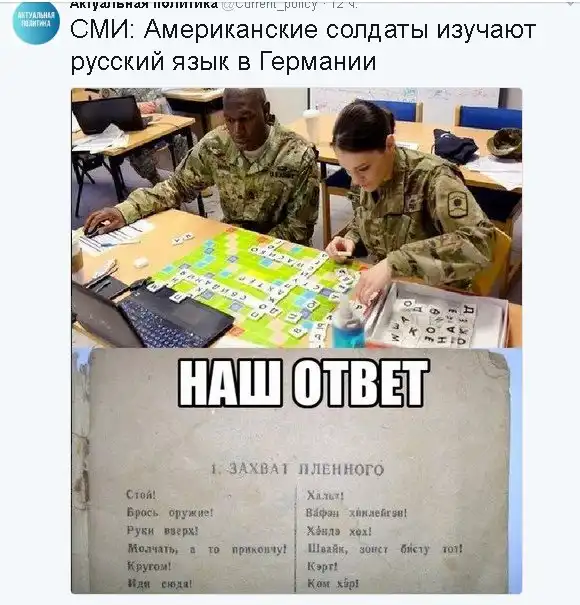 пендосы порадовали - можно будет нормально хоть допрашивать , а то вспоминая немецкий в памяти кроме хенде хох да хальт их бин ге шиссен уже и не помню особо - вот что значит нет практики , так что молодёжь , изучайте пендосо-англицкое наречие - может и пригодится , лучше , конечно , в мирных целях или вдруг в ССО попадёте - там без этого никак