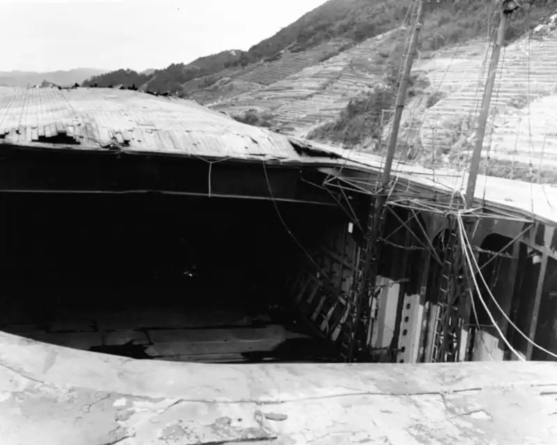 Полетная палуба тяжело поврежденного японского легкого авианосца «Рюхо» (龍鳳).
