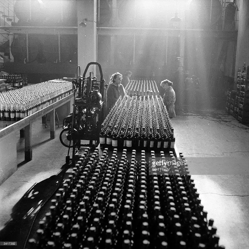 Разлив ликёра "Шартрез" в винных погребах при монастыре картезианского ордена в Вуароне; Франция; 1953-й год