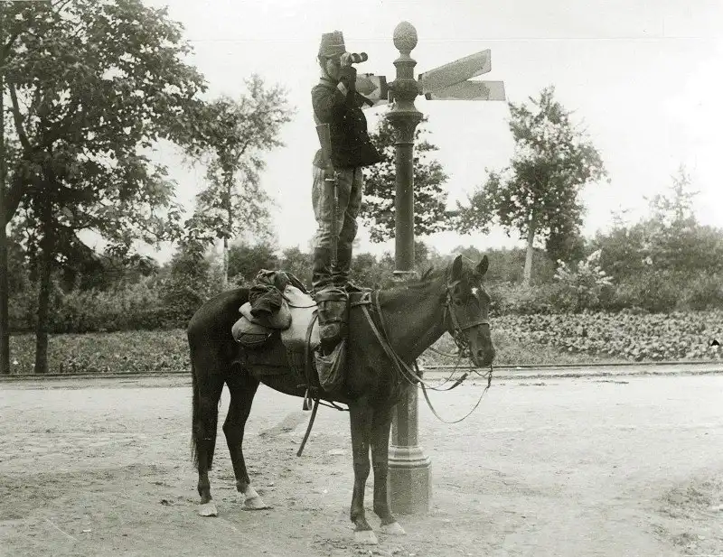 Кавалерист армии Бельгии наблюдающий за местностью, 1914 г.