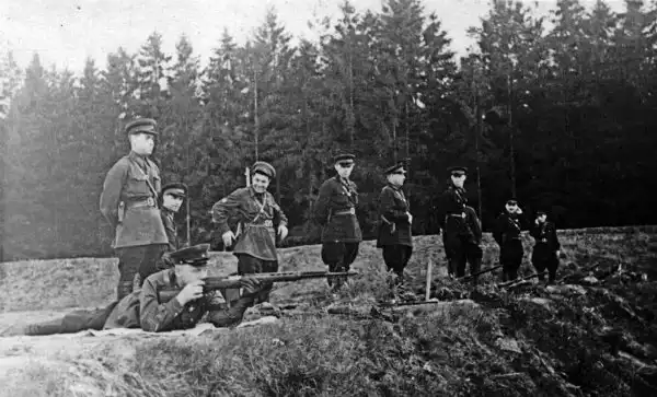 Фото не ранее второй половины 1940 года. Представители руководящего состава Московской милиции на военном стрельбище, где при наставничестве со стороны армейских коллег осваивают новейшую на тот момент времени винтовку – СВТ-40.