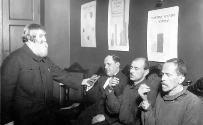 ХХ сьезд КП США. Чикаго, 1939 год. Над трибуной портрет Линкольна. По бокам — до боли знакомые лица…