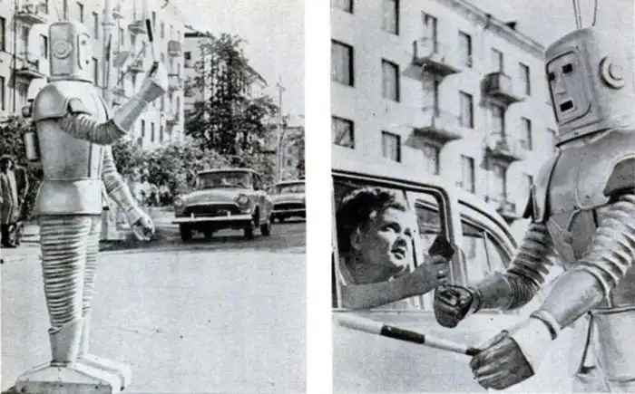 где была опубликована статья об уникальном роботизированном гаишнике 1967 модельного года рождения. На снимках — робот–регулировщик, который умел выполнять 80 команд и управлялся дистанционно
