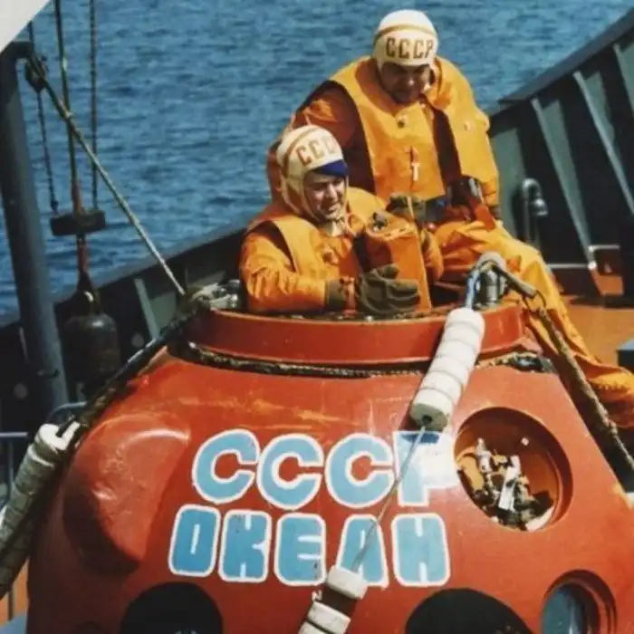 Советские космонавты на тренировке перед полетом на орбитальную станцию «Мир»