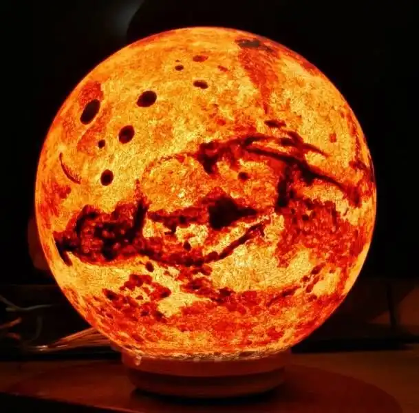Эти уникальные ночники ручной работы делает декоратор интерьеров Мария Елена. Будучи по специальности астрофизиком, женщина подробно воссоздает в миниатюре каждую из планет, используя для этого декоративные шары для сада и дома. Знакомясь со свежими снимками той или иной планеты, Мария Елена берется за кисть и приступает к раскрашиванию шара. На создание миниатюрной Луны уходит до 6 часов, в то время как другим планетам требуется уделить больше времени, так как необходимо наносить больше слоев краски.