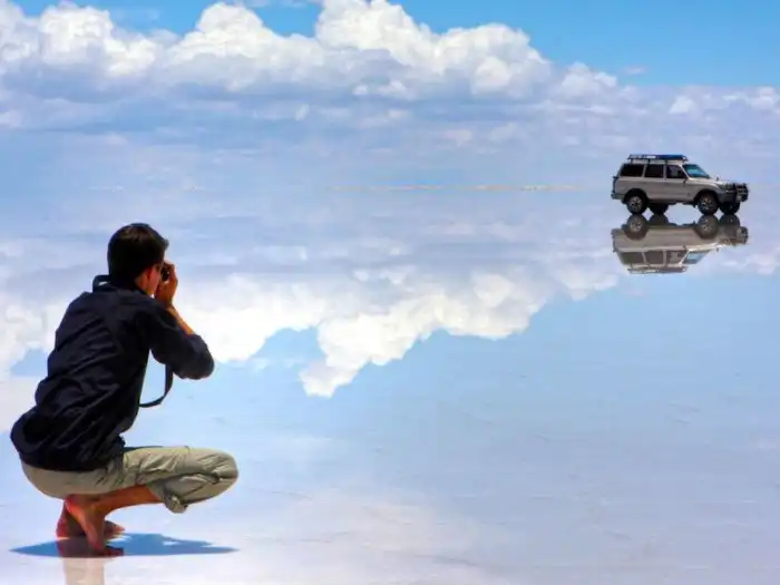 Это высохшее соляное озеро, расположенное в Боливии. В период дождей соляная поверхность покрывается слоем воды и превращается в самое большое зеркало мира. От такого зрелища у вас наверняка захватит дух, ведь описать свои ощущения, стоя на поверхности озера, отражающего небо и облака просто невозможно.