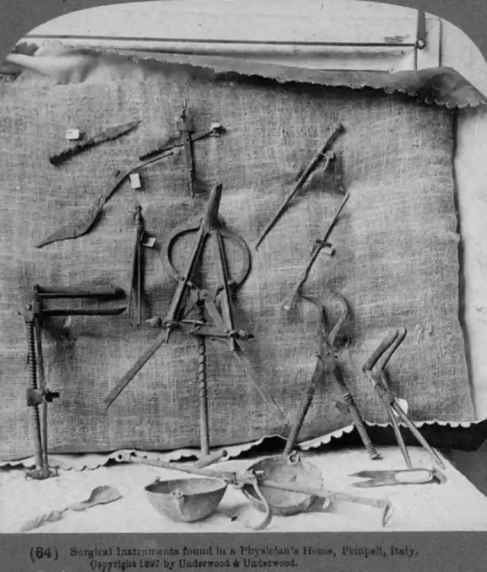 Римские хирургические инструменты, найденные в доме врача в Помпеях, Италия, I век