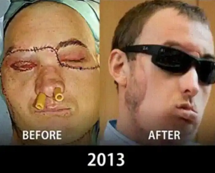В наши дни пластические хирурги могут не просто изменить внешность человека, но и полностью пересадить лицо. Наибольший рывок в этой области был совершен в течение последних лет, и этот пост наглядно продемонстрирует, каких результатов удалось достичь. Внимание, фото не для впечатлительных.