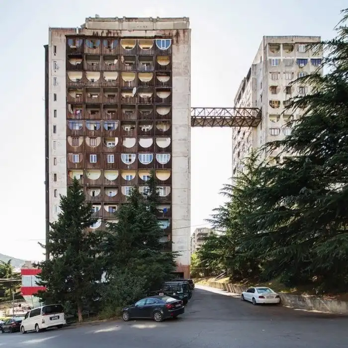 Судя по фотографиям, между домами имеется не хилый такой перепад высот, да и находятся они в низинке. Соответственно для жильцов, идущих домой, со стороны горы (кто его знает, может там дорога и автобусы ходят?), это наиболее быстрый и лёгкий способ добраться до своей квартиры, ведь пройти по мосту легче чем спуститься с горы, да и безопасней.