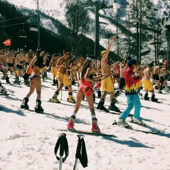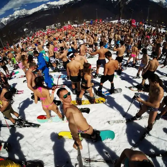 На сочинском горнолыжном курорте «Роза Хутор» прошел фестиваль BoogelWoogel, участники которого спустились со склона в купальниках. Массовый спуск лыжников и сноубордистов в купальных костюмах состоялся 1 апреля, когда со склона съехали от 1200 до 1900 человек (данные разнятся) из разных городов России и ближнего зарубежья. Организаторы фестиваля надеются на рекорд «Книги рекордов Гиннесса», однако о том был он установлен или нет, станет известно позже, когда комиссия проведет необходимые подсчеты.