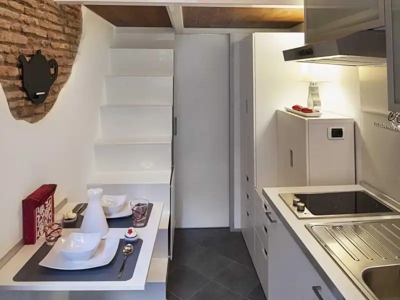 В 2010 году архитектор и дизайнер Марко Пьерацци купил в центре Рима домик площадью 7 кв.метров и сделал из него пусть крошечную, но полноценную квартиру. В двухуровневом помещении есть кухня, ванная комната и спальня. Пьерацци начал сдавать квартиру в аренду после того, как у него родился ребенок, и он с семьей переехал.