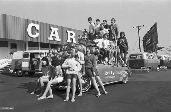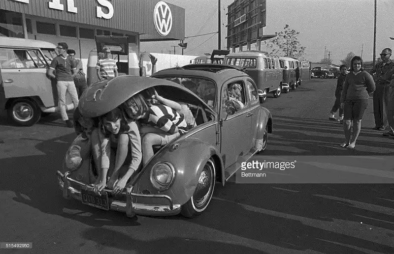 Демонстрация "безразмерности" малолитражного легкового автомобиля Фольксваген-Жук, проведенная в 1964-м году в Калифорнии