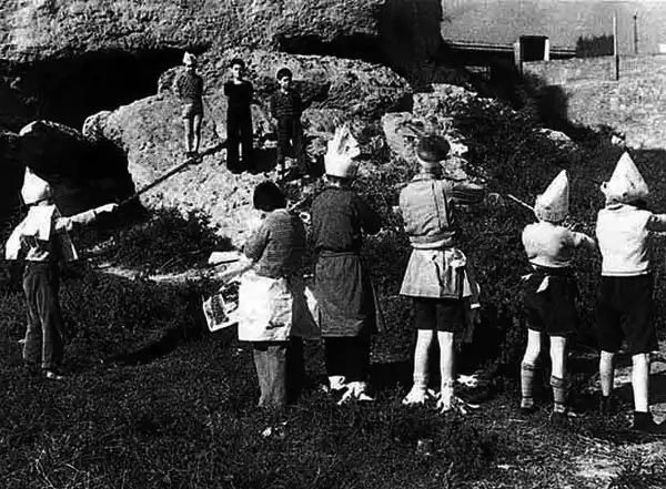 1941 г. Головной убор, у отца-командира, занятный. Шлем-шляпа? И что он из кармана, бумажник достает?