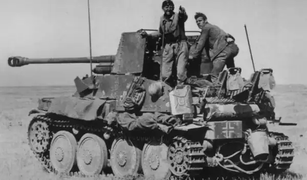 Несколько раз на глаза попадалось это фото: ну Мардер III - ничего примечательного, если бы не кaмpaд справа, на котором явно обгоревший китель....