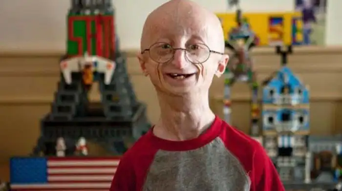 Сэм Бернс с рождения страдал прогерией - ускоренным старением всех систем организма. На этом снимке, на котором он выглядит довольно пожилым мужчиной, Сэму 10-12 лет. Сэм умер от старости в 17 лет, успев отдать немало времени и сил просвещению населения по вопросам прогерии и поддержке людей с аналогичной болезнью.
