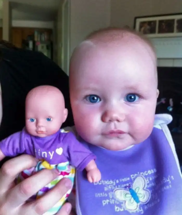 Покупка первой куклы для ребенка - незабываемое событие для родителей! Правда, порой папа и мама замечают поразительное сходство игрушки и их малыша. В этой подборке вы увидите детей и их кукол, которые похожи друг на друга как две капли воды! Кажется, девочка немного обеспокоена тем, что в магазине нашлась ее сестра-близняшка