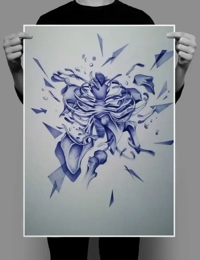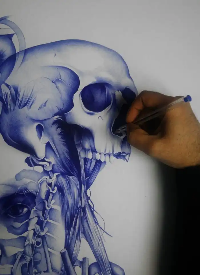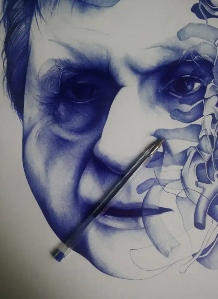 Парень рисует простой шариковой ручкой, а получается почти фотография