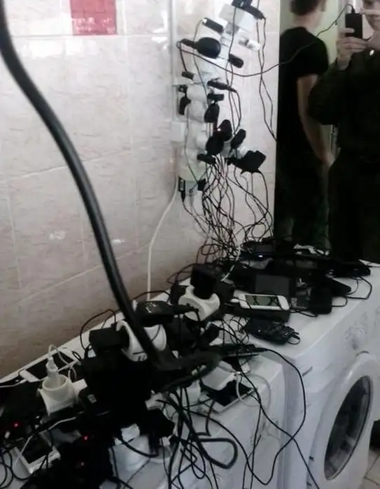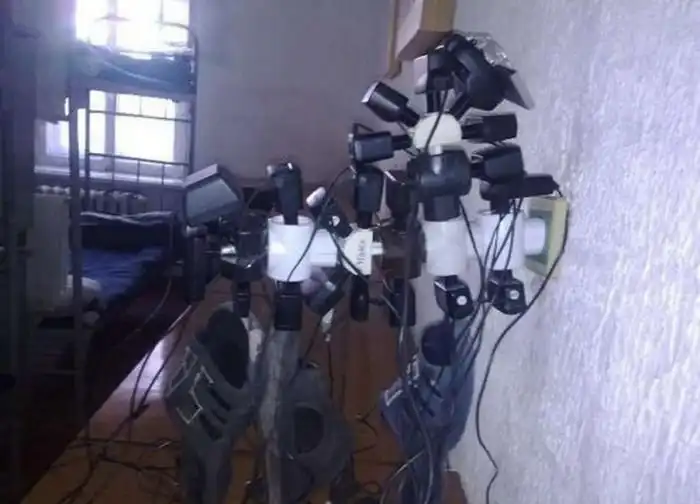 Даже в современной армии розетка в казарме является большой роскошью, однако у каждого военнослужащего есть мобильный телефон, который нуждается в зарядке. Далее предлагаем взглянуть на то, как выглядит процесс зарядки мобильных телефонов, когда их количество многократно превышает количество розеток.