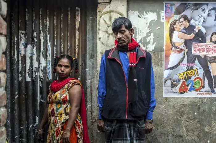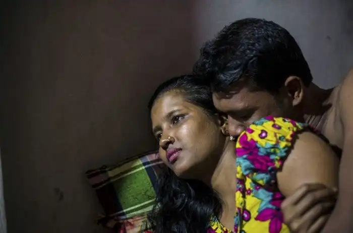 На фото: Каджол с клиентом. Она думает, что ей 17 лет, но точный возраст не знает. Была замужем в течение девяти лет, а потом тетя продала ее в бордель «Кандапара». Родив сына Мехеда, через две недели девушка уже была вынуждена снова начать работать