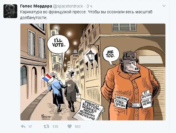 чо правда? французкая газета публикует рисунки с подписями на англиском????