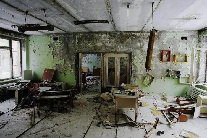 Ближе к разрушенному реакторному залу помещения становятся все более страшными.