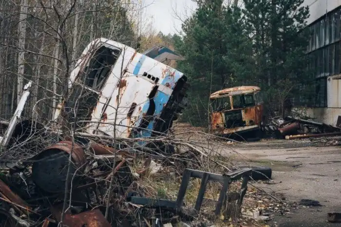Кладбище для автомобилей сильно загрязненных радиацией, рядом с Чернобыльской АЭС