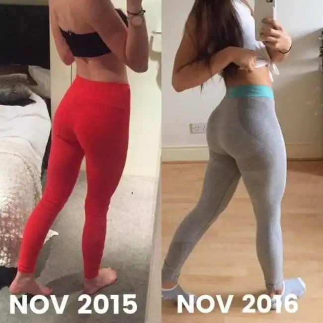 22-летняя британка Эмма О'нейлл (Emma O’Neill) на собственном примере показала, что вес это всего лишь цифры, на которые не стоит полагаться. Низкокалорийная диета и кардиотренировки поспособствовали тому, что Эмма весила 48 кг, однако идеальной, по своему мнению фигуры, она так и не добилась. В тот момент девушка решила, что ей необходима мышечная масса и кардинально изменила свои тренировки. К занятиям с отягощениями в тренажерном зале она добавила более калорийную диету и сумела набрать 9 кг, с которыми ее фигура стала выглядеть куда более привлекательно.