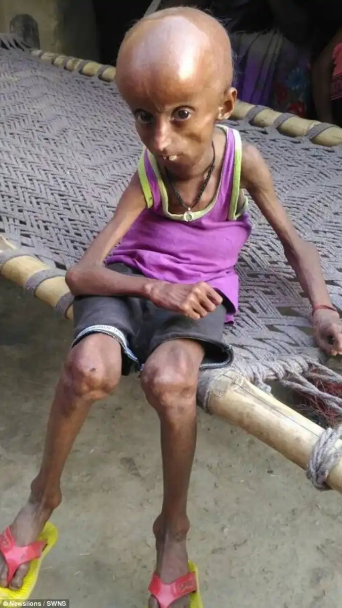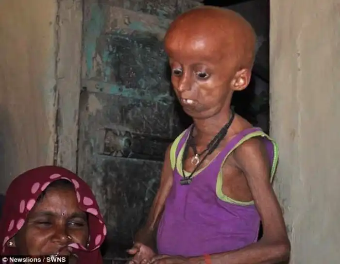 "Рупеша невозможно вылечить, - говорит доктор Югантар Панди, наблюдающий за Рупешем. - Большинство пациентов с этой болезнью доживают лишь до 13 - 15 лет. Лишь немногие, как Рупеш, могут перешагнуть порог двадцатилетия. Первые симптомы болезни проявились у мальчика в два года. Из-за нее у Рупеша остановился рост, стали выпадать волосы и зубы, ослабели мышцы, а кожа покрылась морщинами. Это все - следствия генетического дефекта".